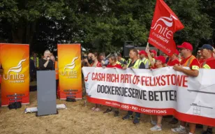 "Container dwell times at the Port of Felixstowe soared last week following a major staff walkout in...
